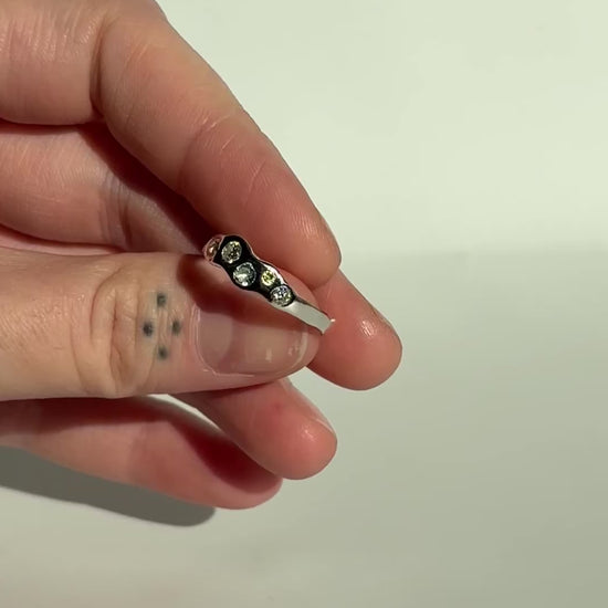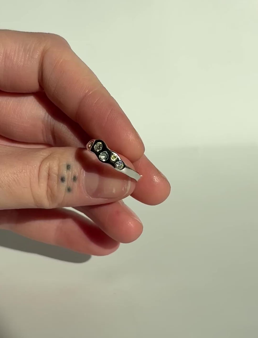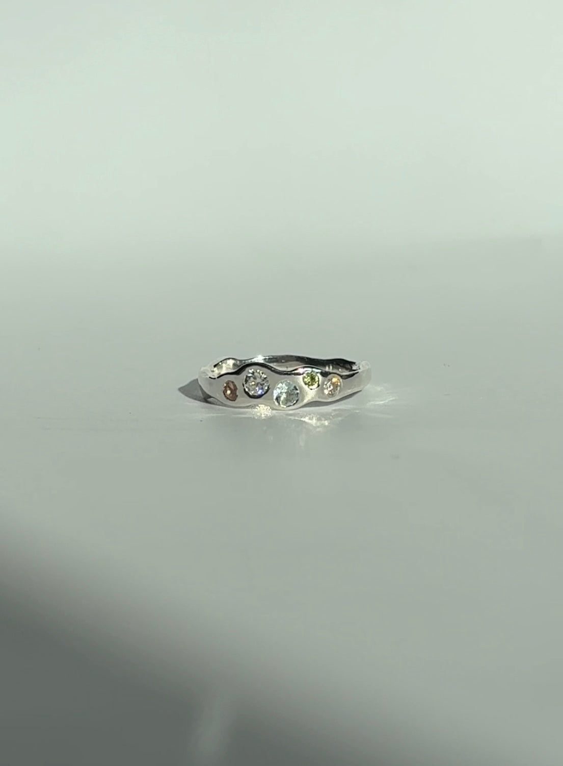 This ring is solid sterling silver and holds moissanite, sapphire, peridot, aquamarine and a Malaya garnet all in the prettiest pastel tones ✨ Size 7.5